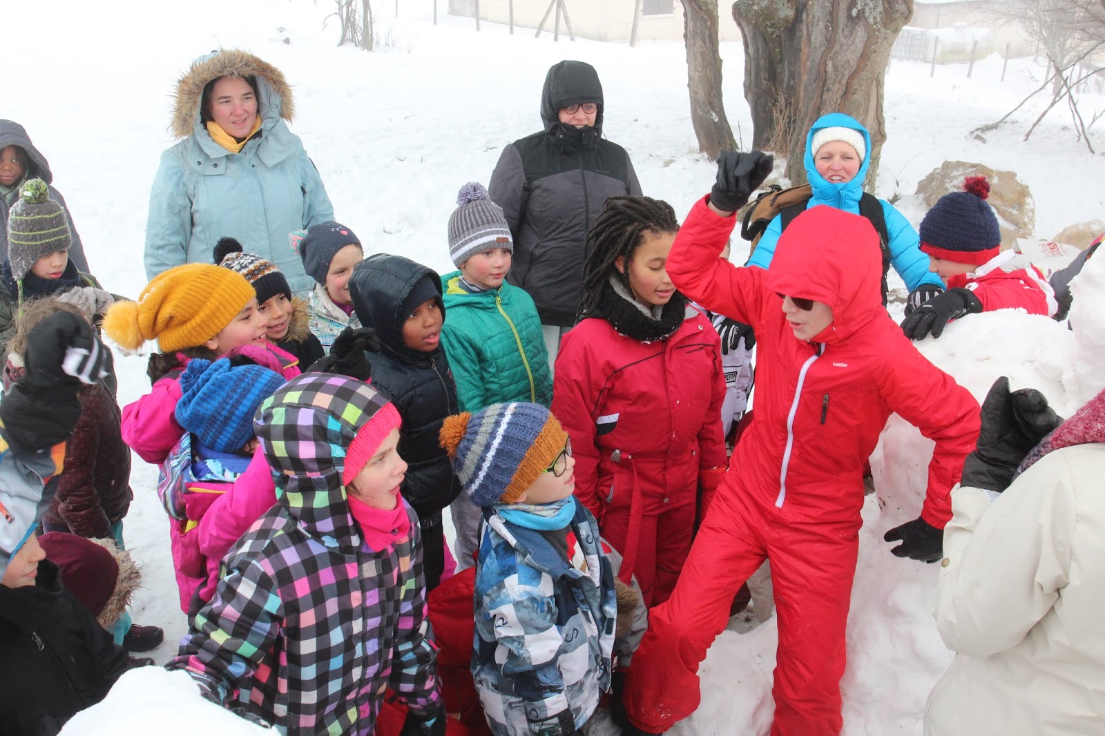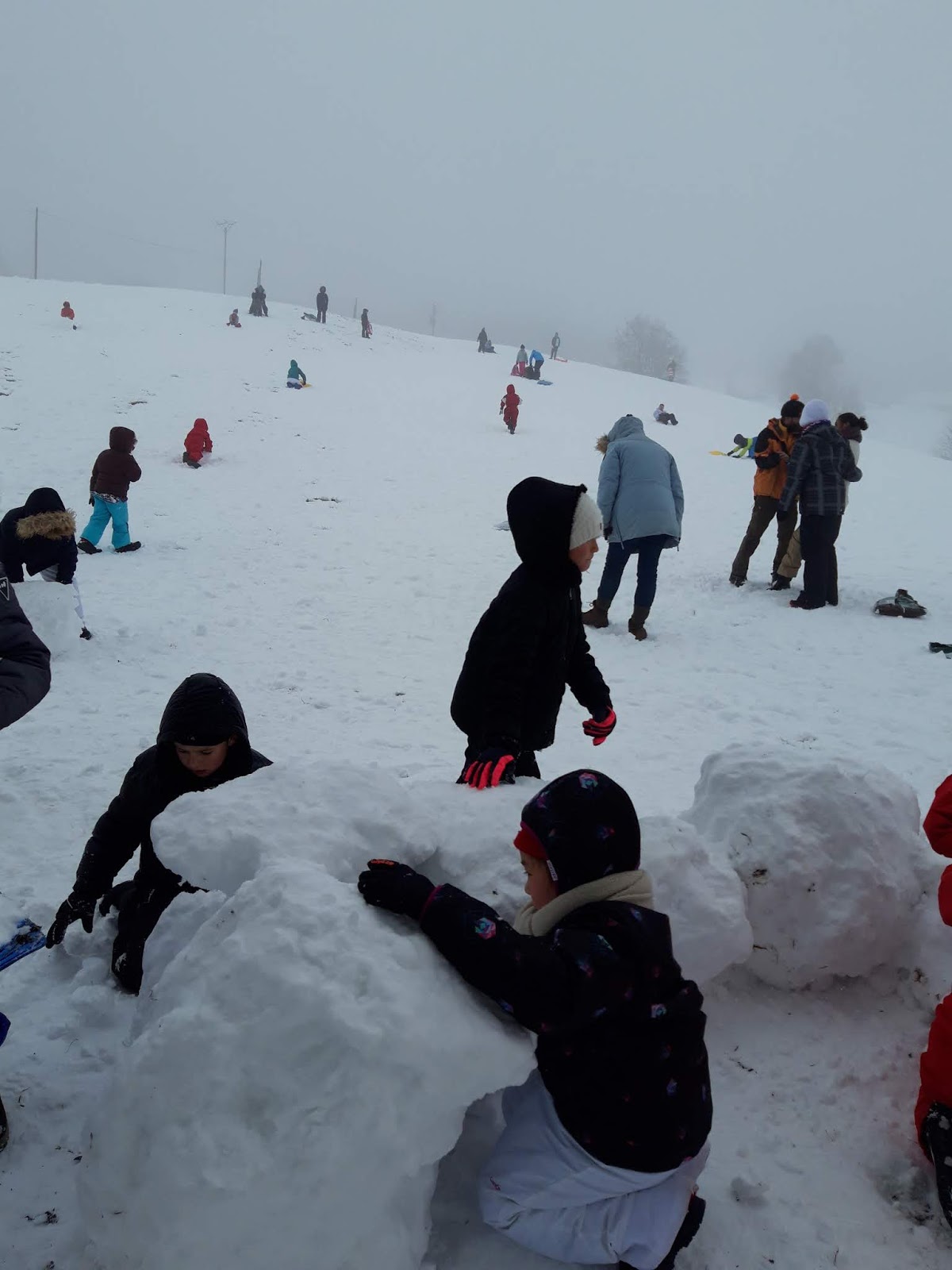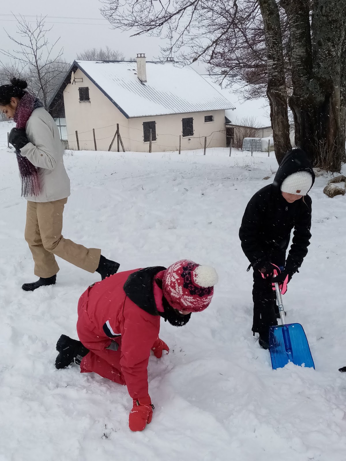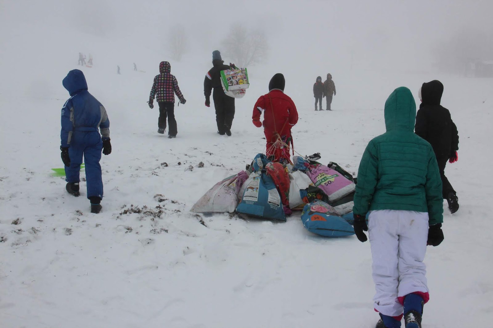 Certains enfants et adultes avaient prié pour avoir la neige : Dieu nous a exaucé mais il a un peu abusé car elle tombait encore et ça fouettait le visage !