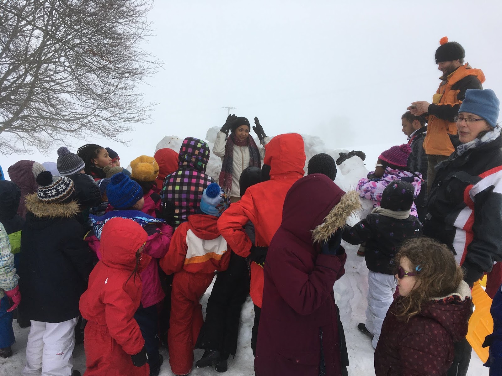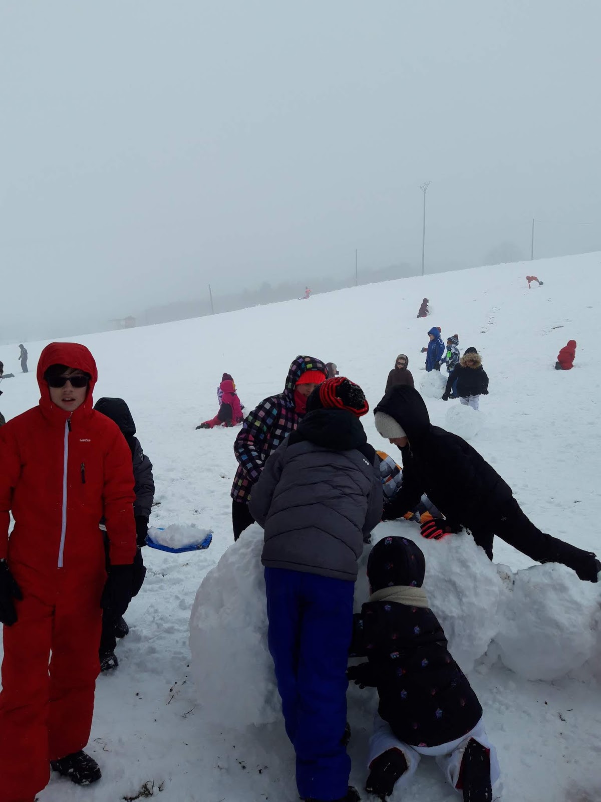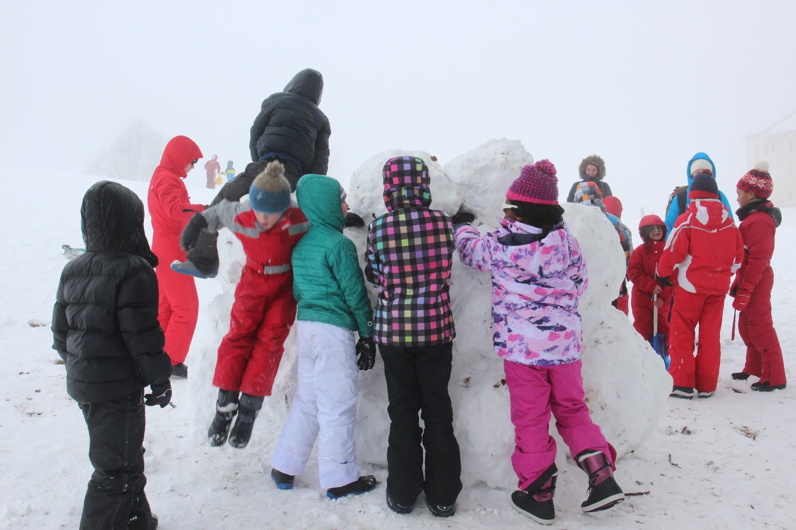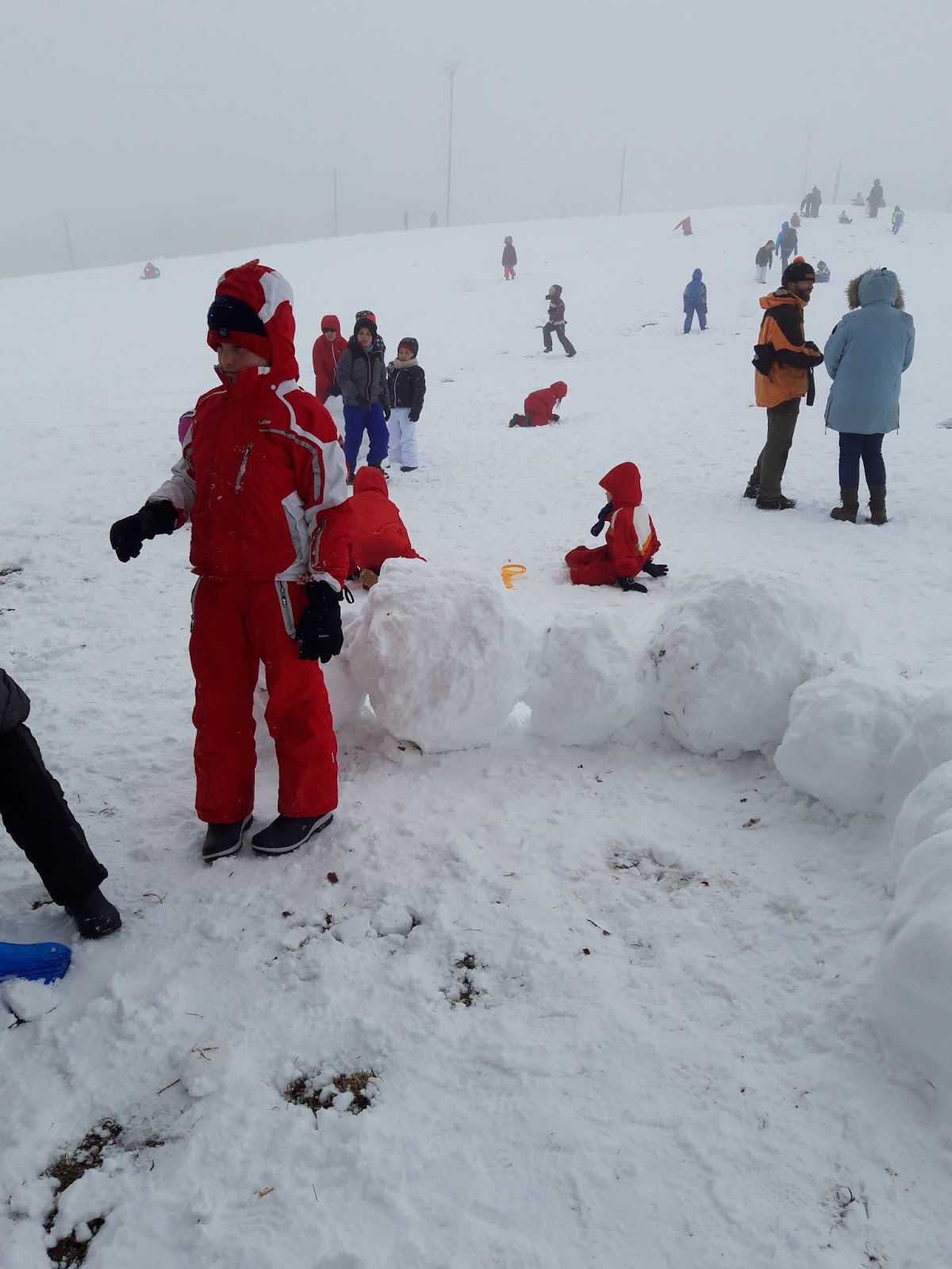 Certains enfants et adultes avaient prié pour avoir la neige : Dieu nous a exaucé mais il a un peu abusé car elle tombait encore et ça fouettait le visage !