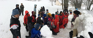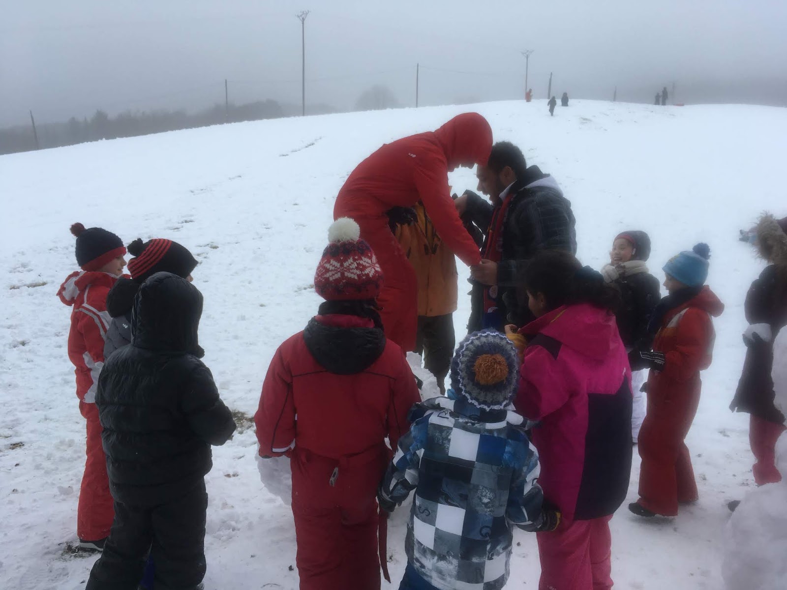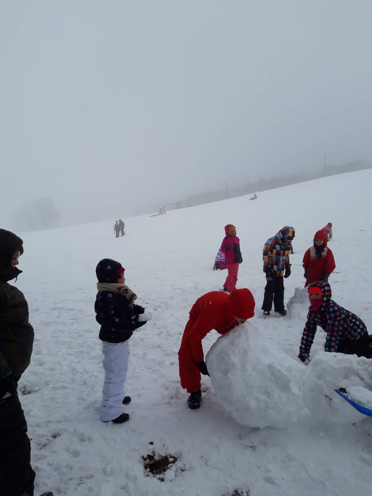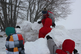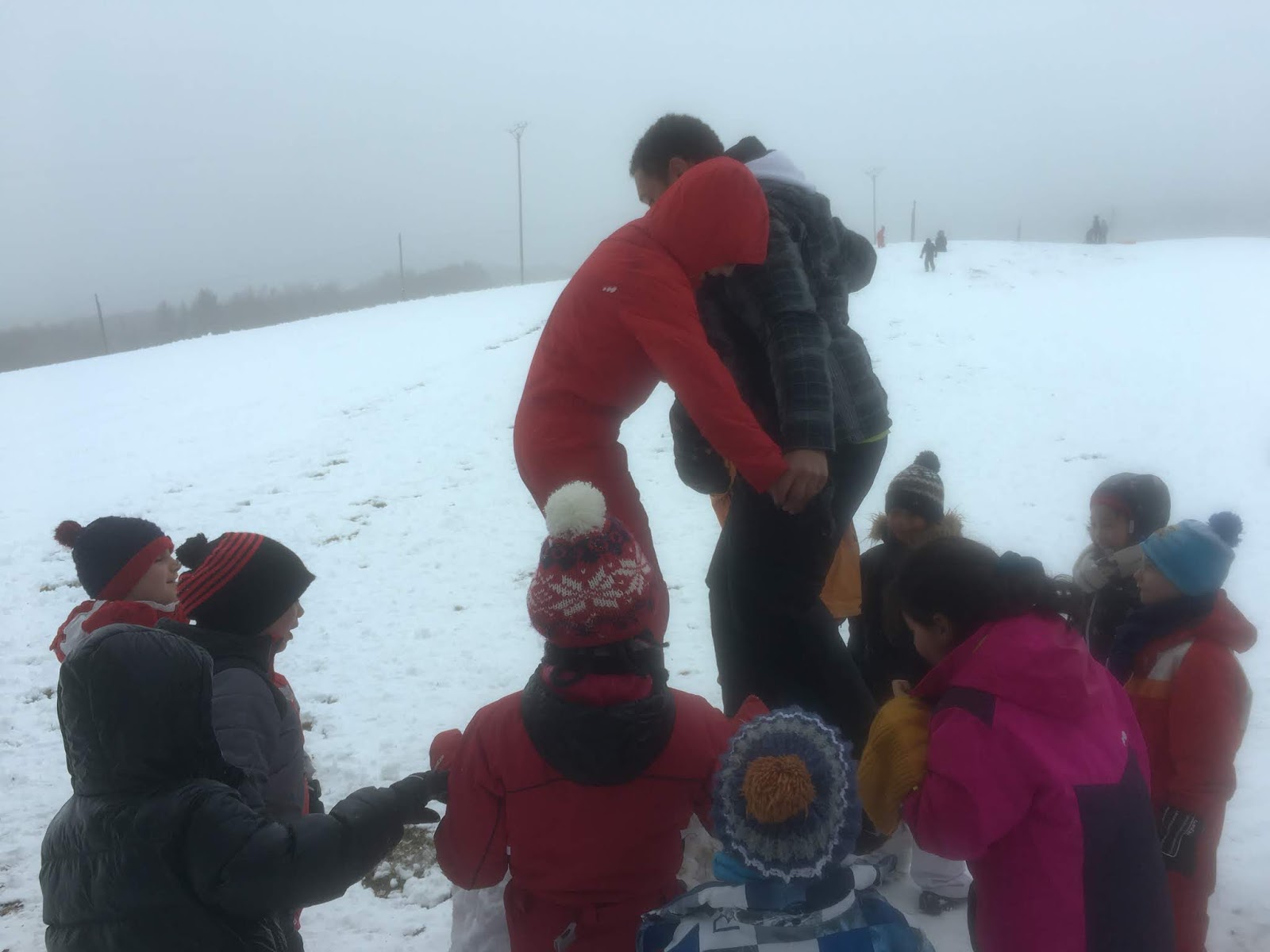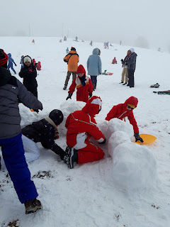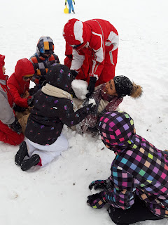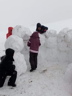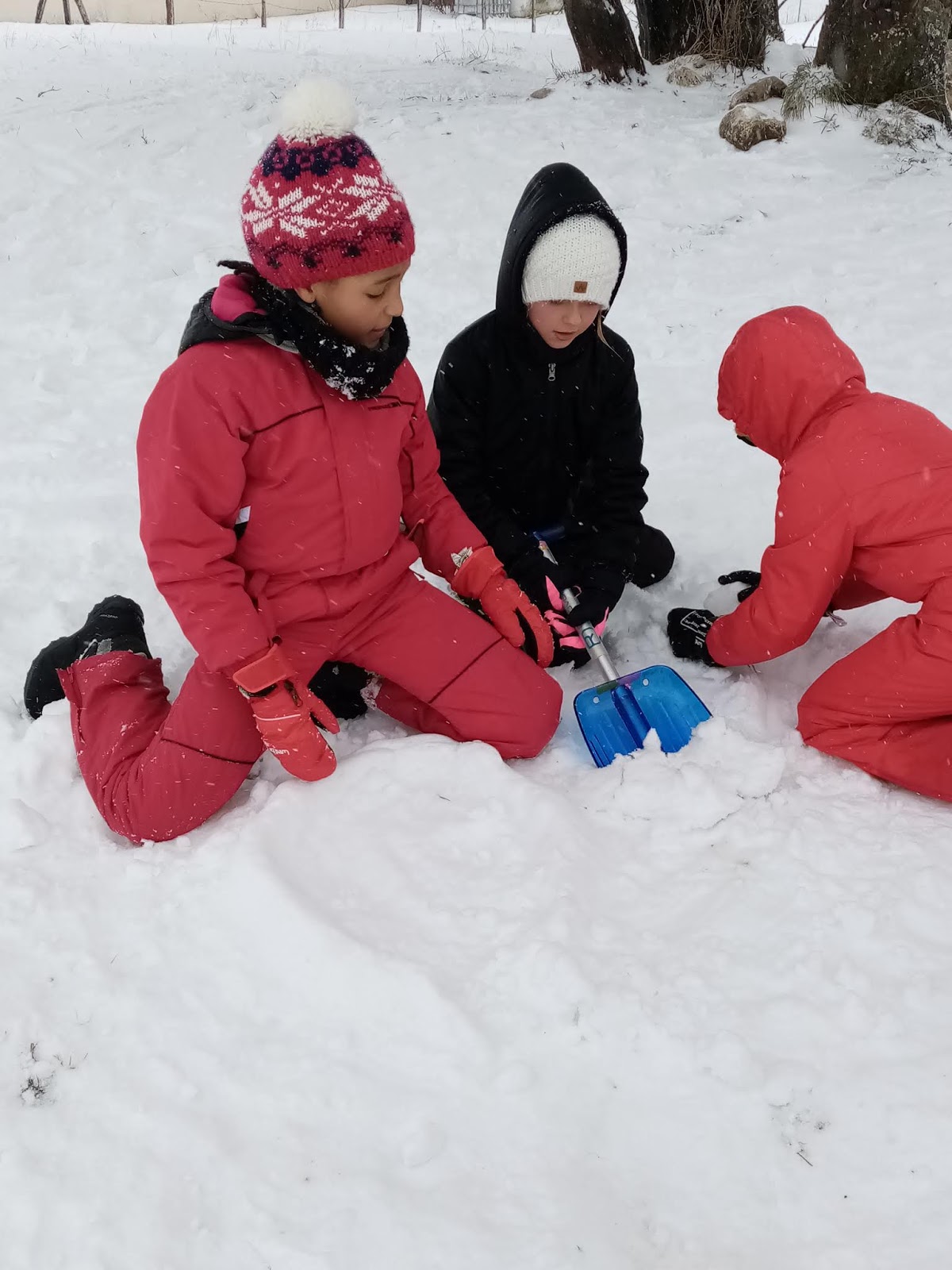 Certains enfants et adultes avaient prié pour avoir la neige : Dieu nous a exaucé mais il a un peu abusé car elle tombait encore et ça fouettait le visage !