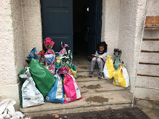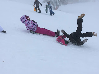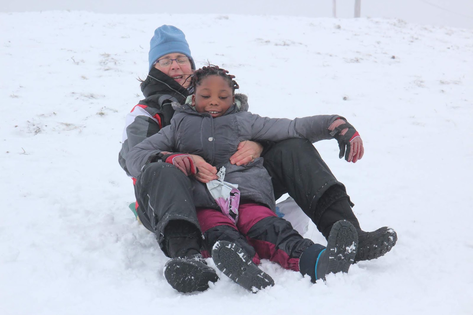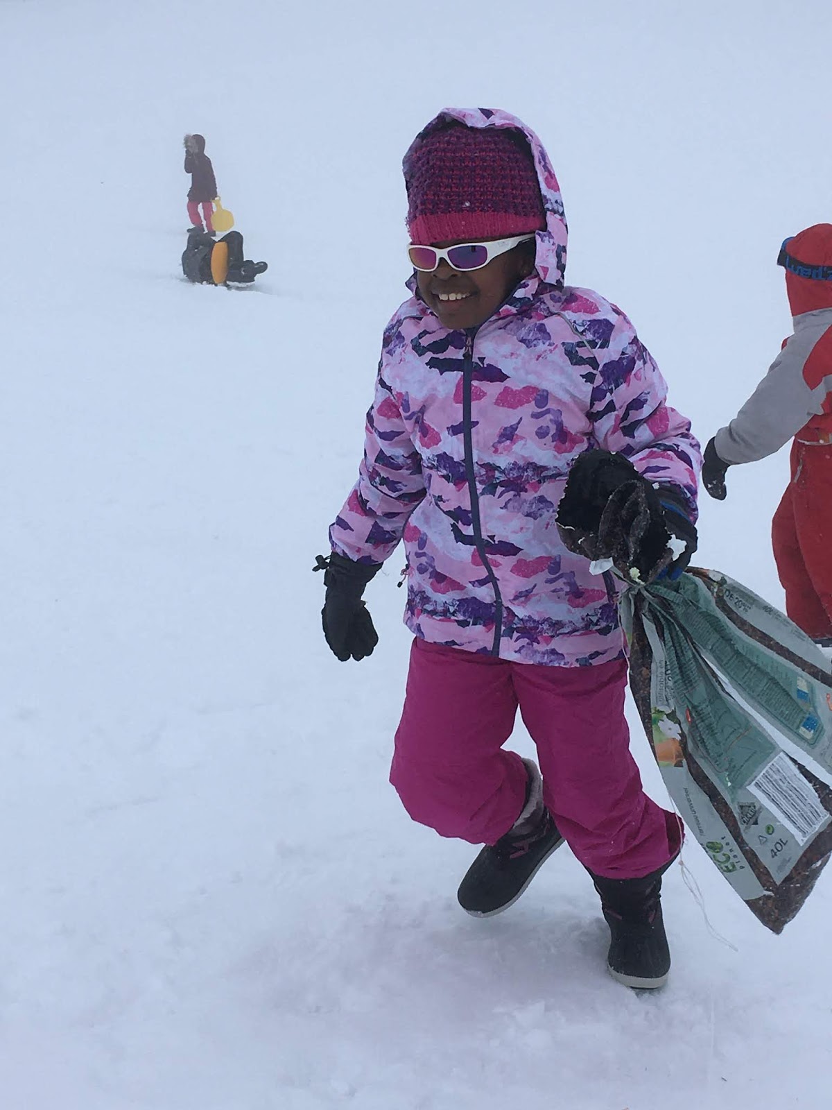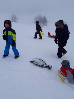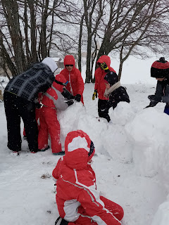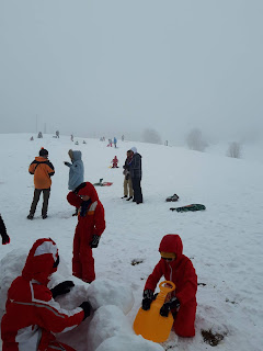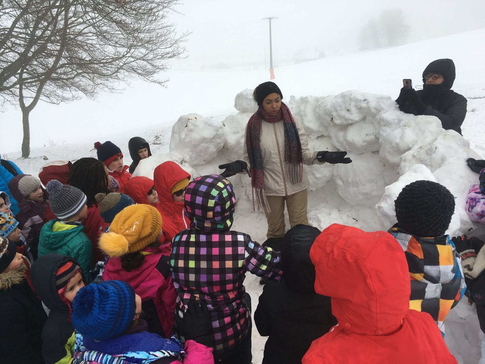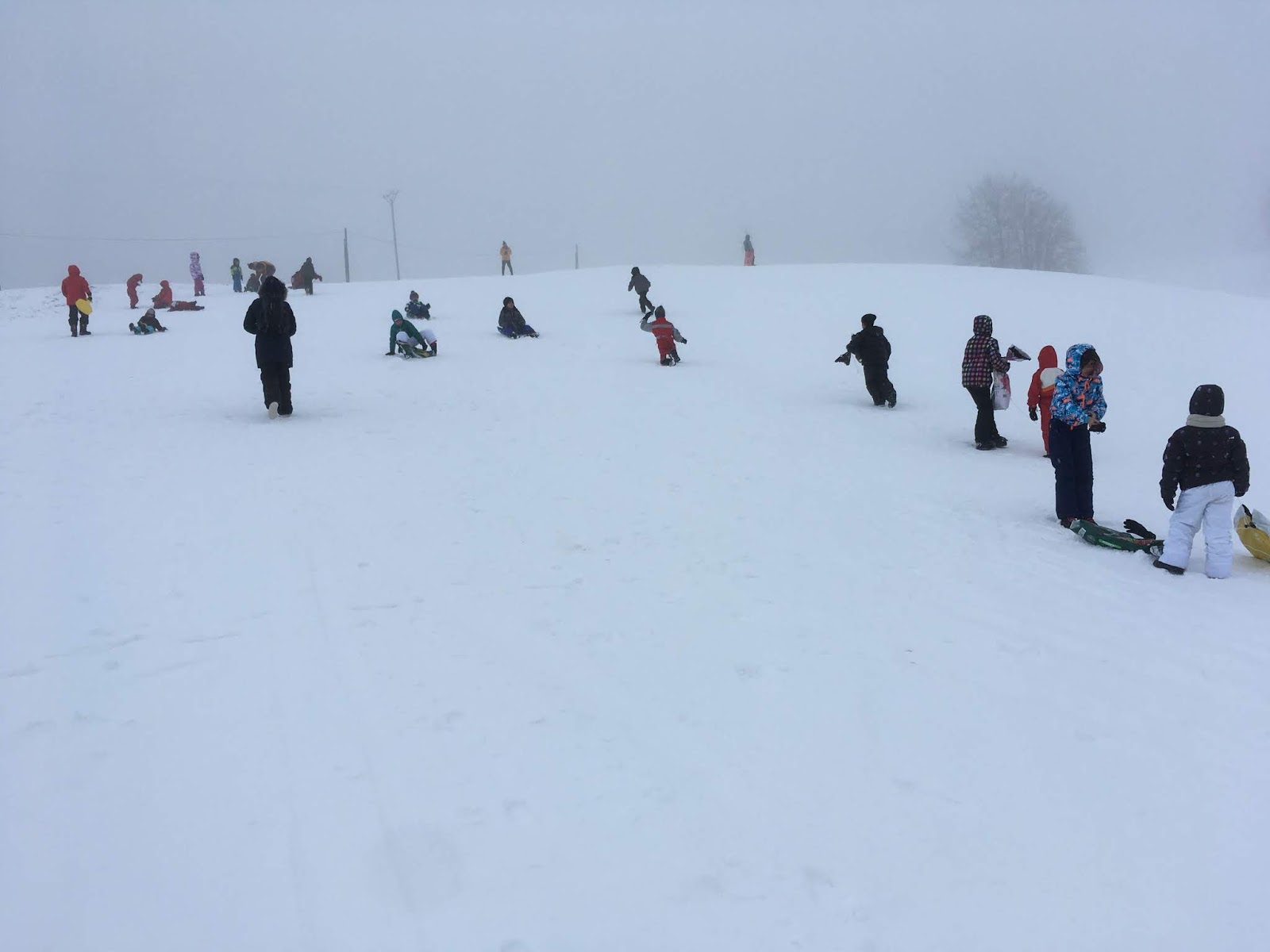 Certains enfants et adultes avaient prié pour avoir la neige : Dieu nous a exaucé mais il a un peu abusé car elle tombait encore et ça fouettait le visage !