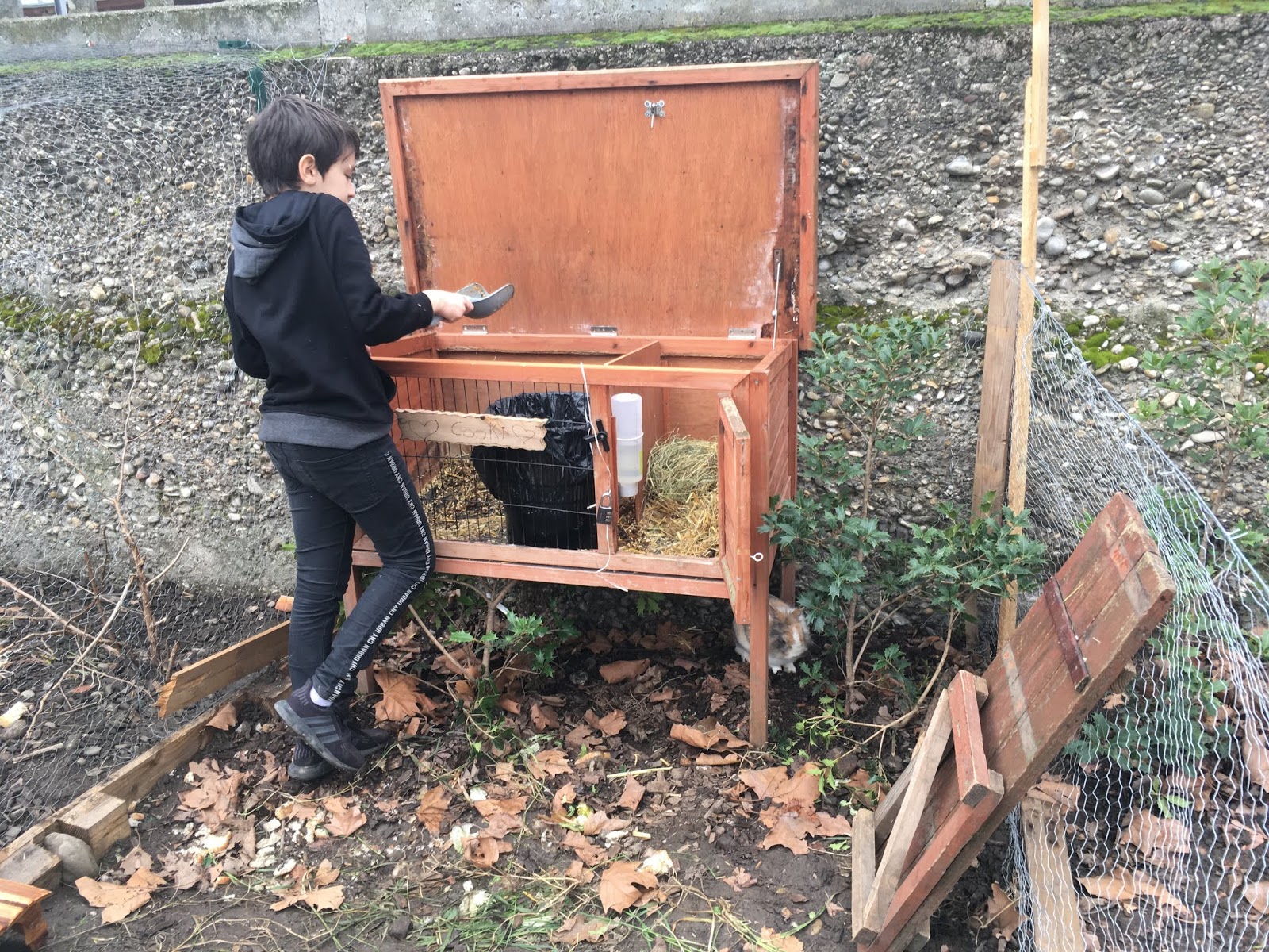 Charly Léo était l’architecte et Raphaël sautait sur les boules géantes pour les couper. Certains ont joué dans une cabane fabriquée avant nous.