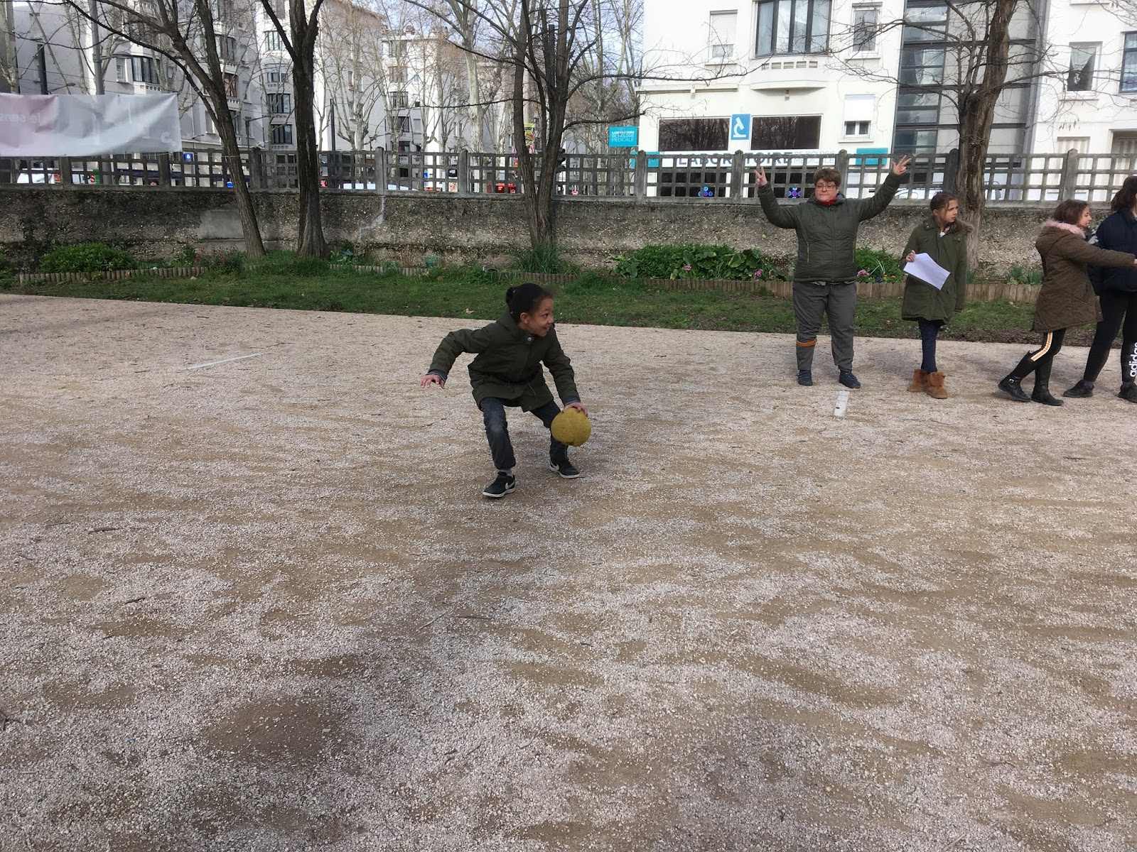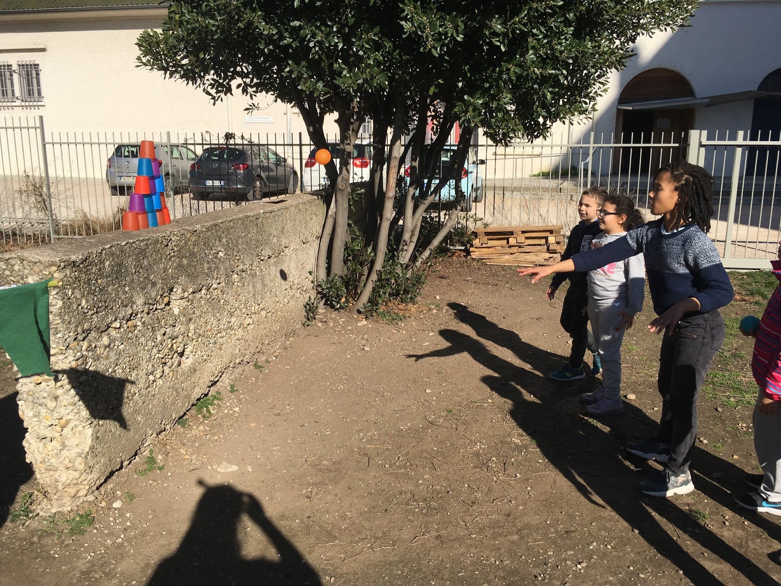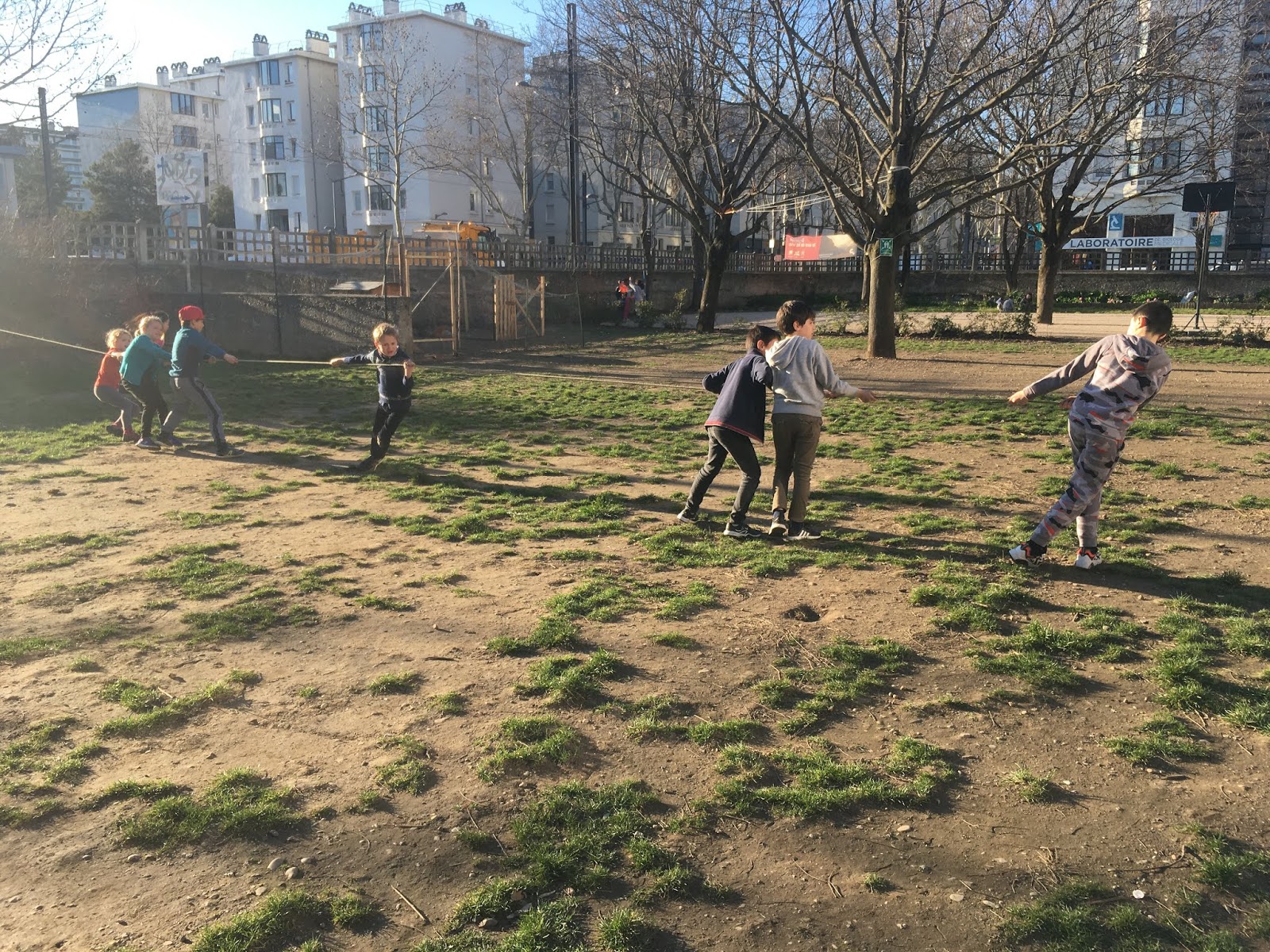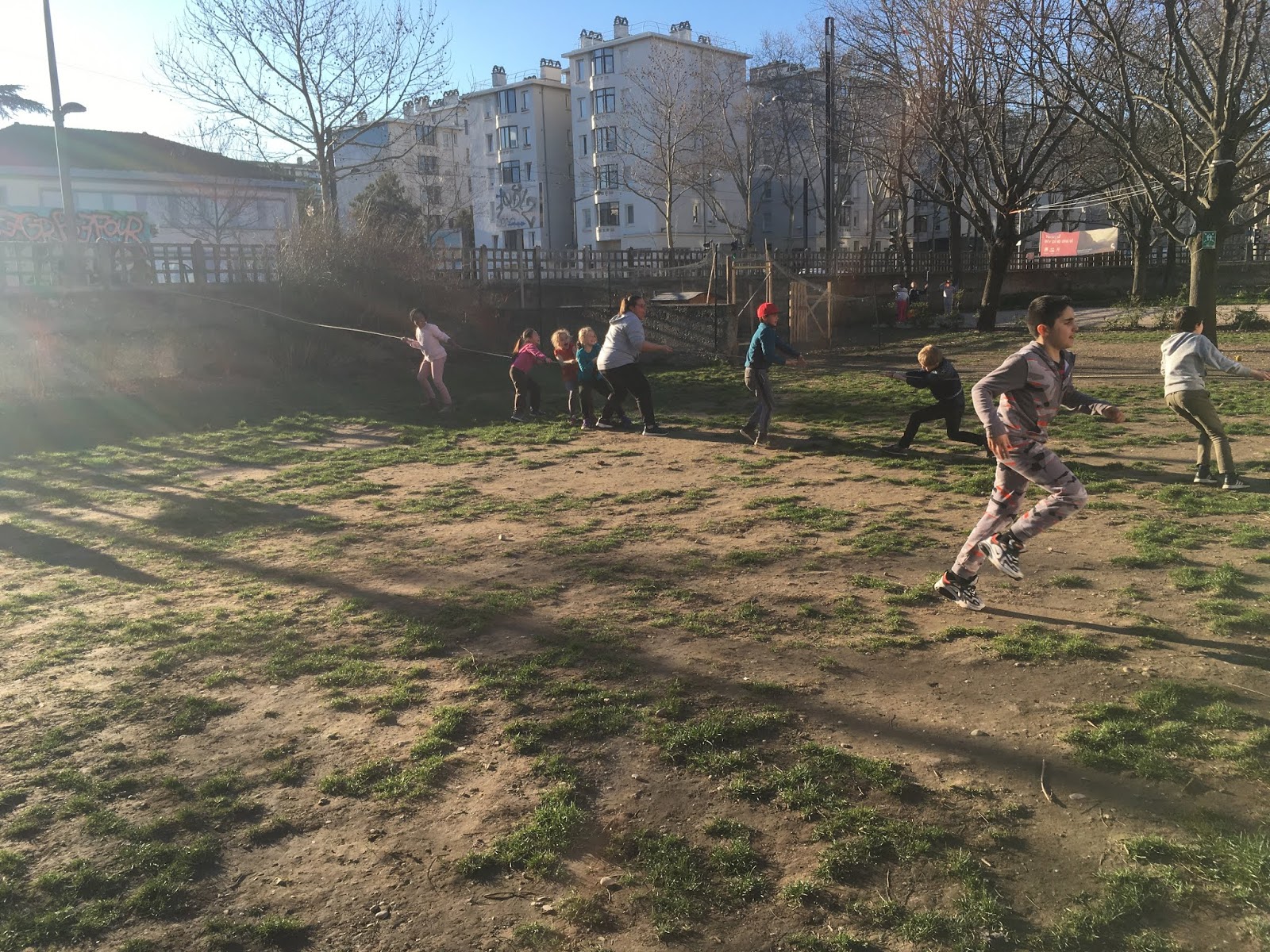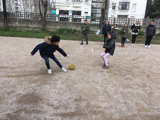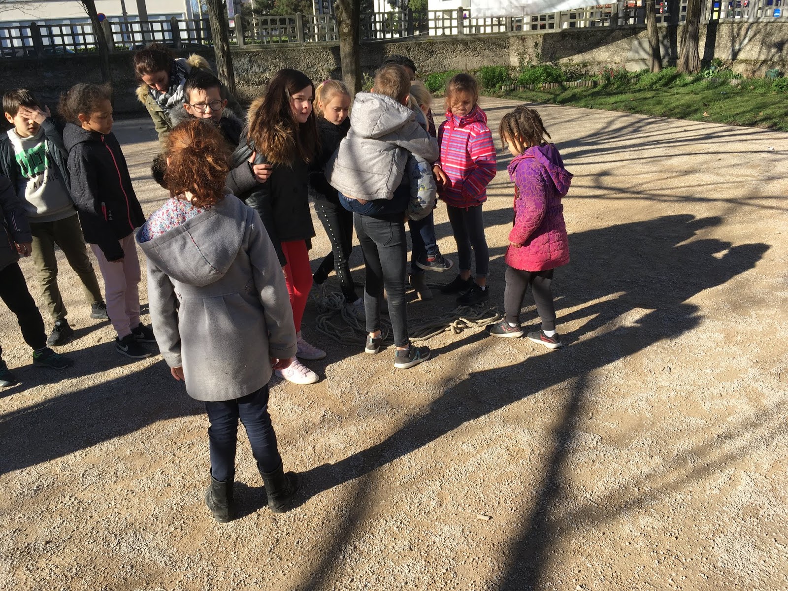 Pendant ce temps, l’autre groupe, pour se réchauffer, faisait un morpion géant et un « Chifoumi »