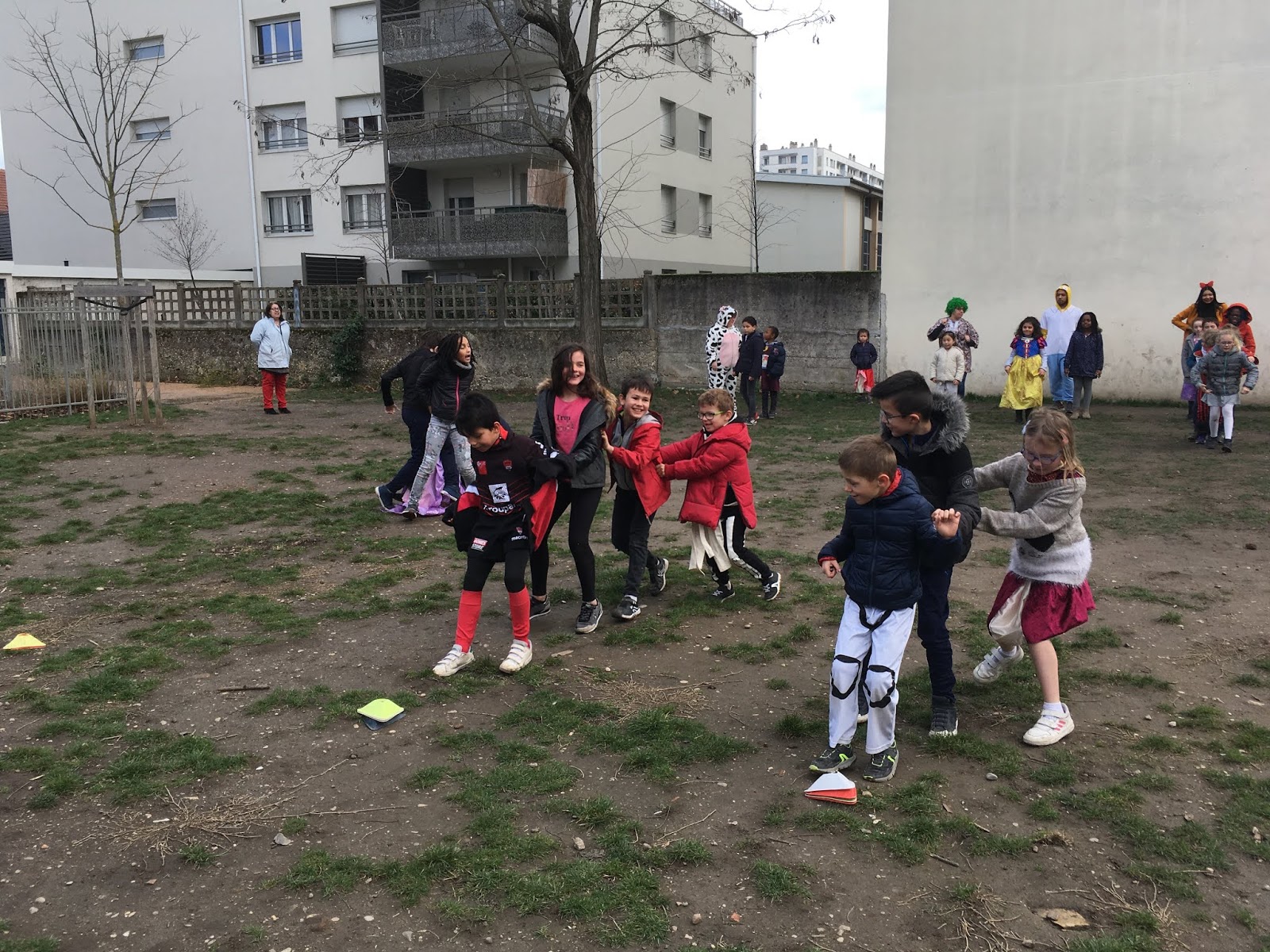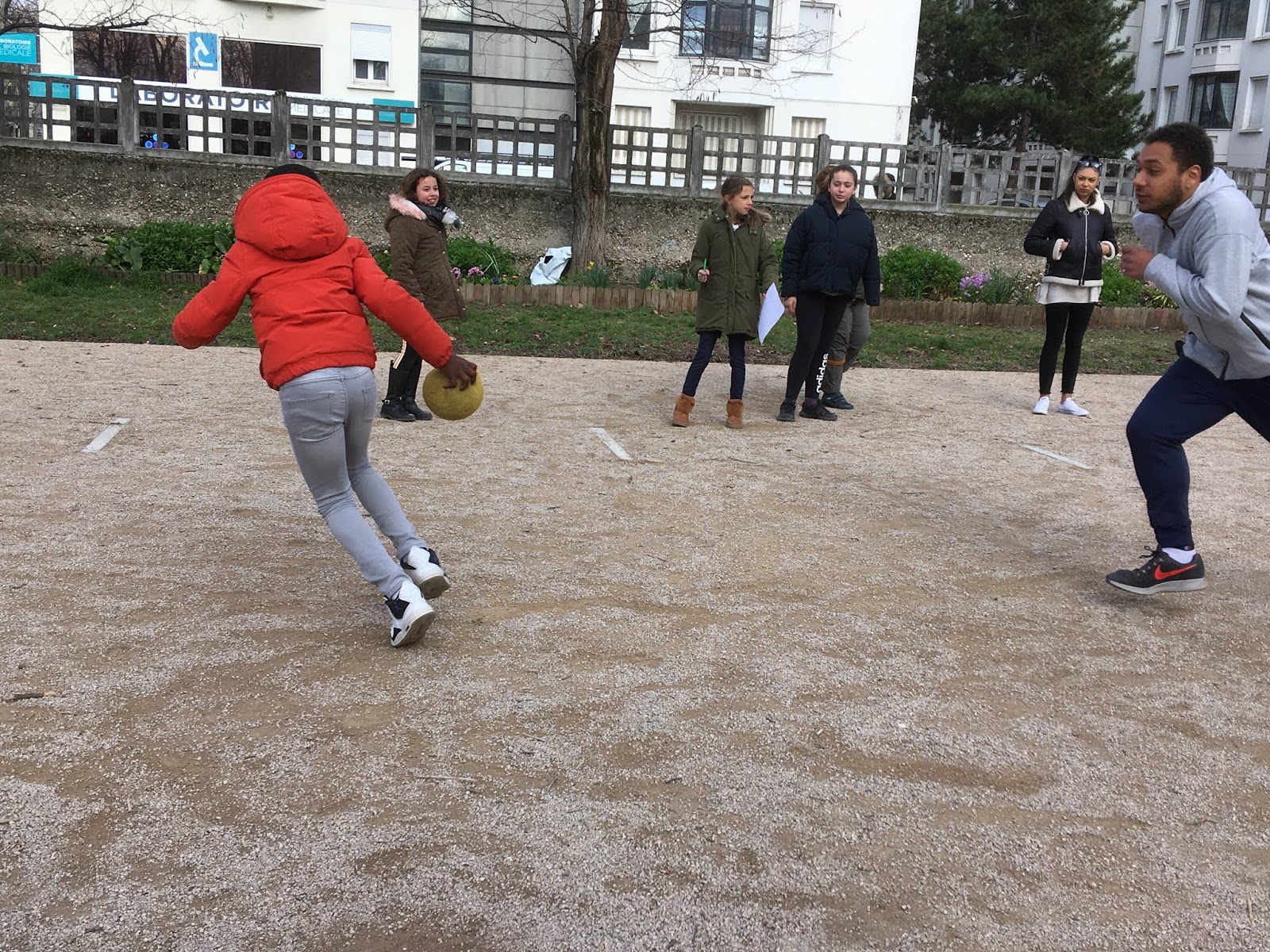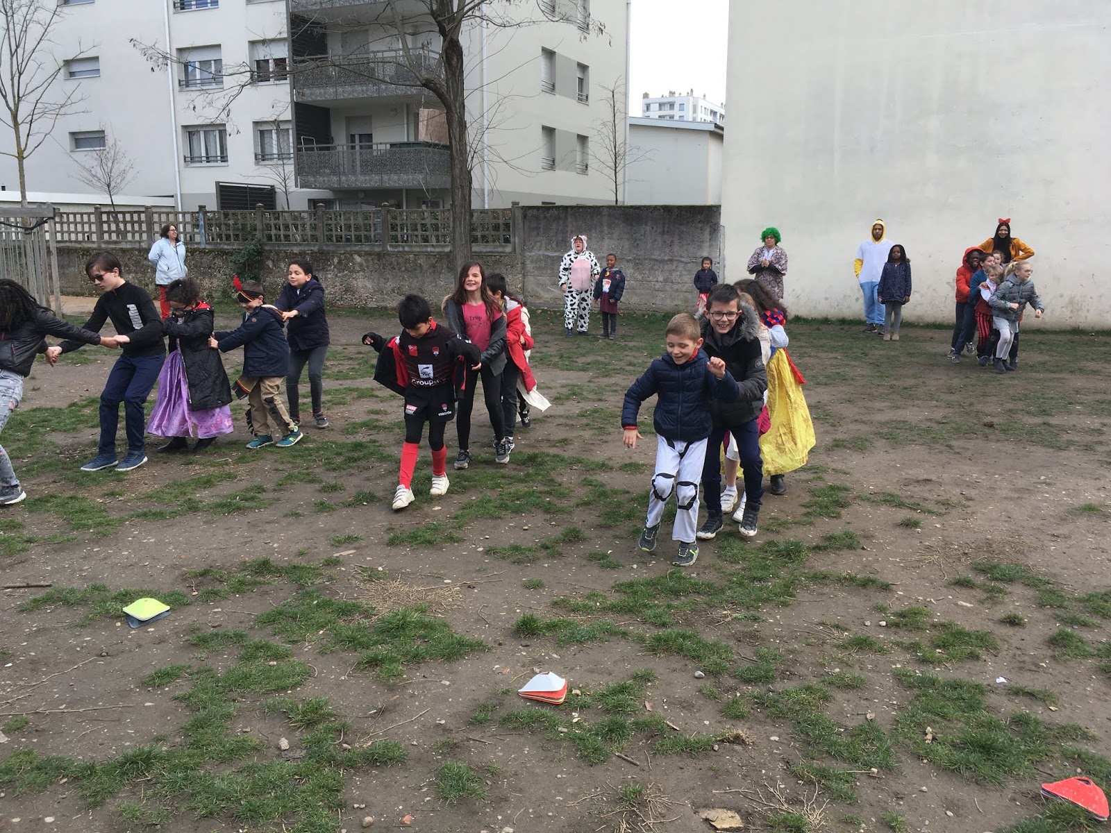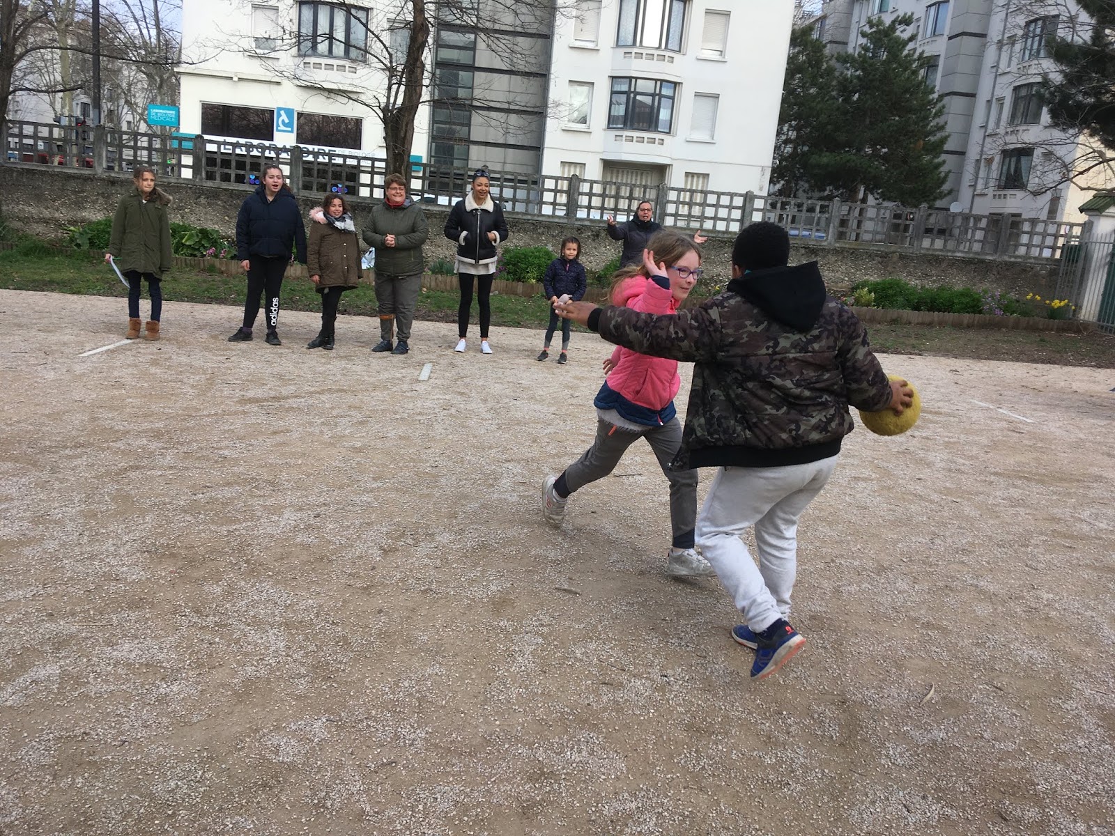 Pendant ce temps, l’autre groupe, pour se réchauffer, faisait un morpion géant et un « Chifoumi »