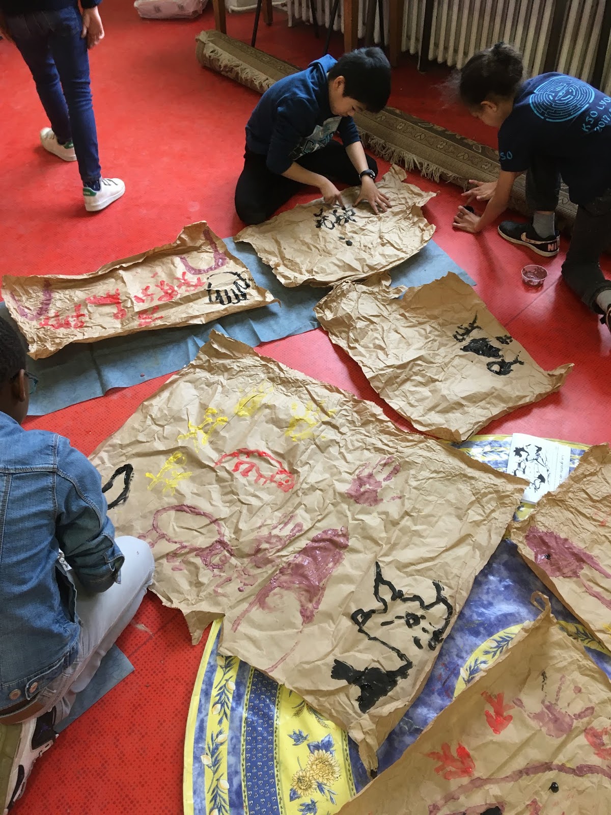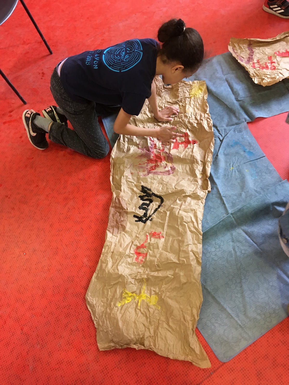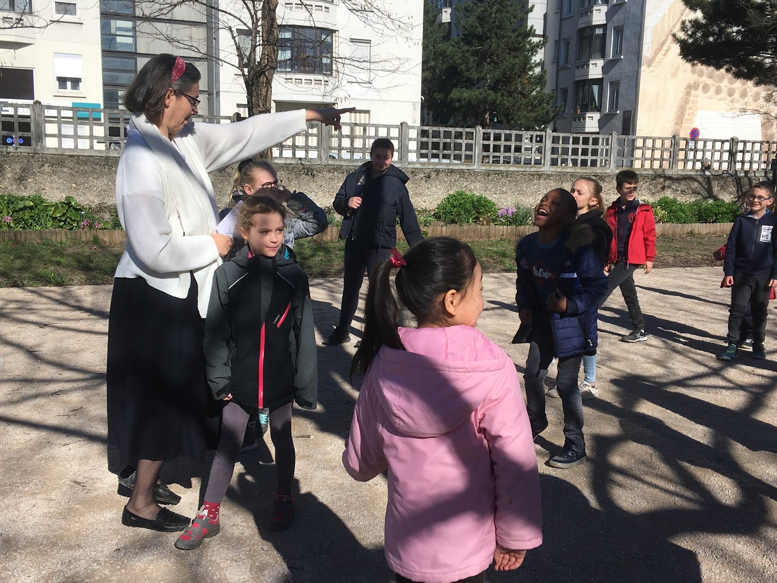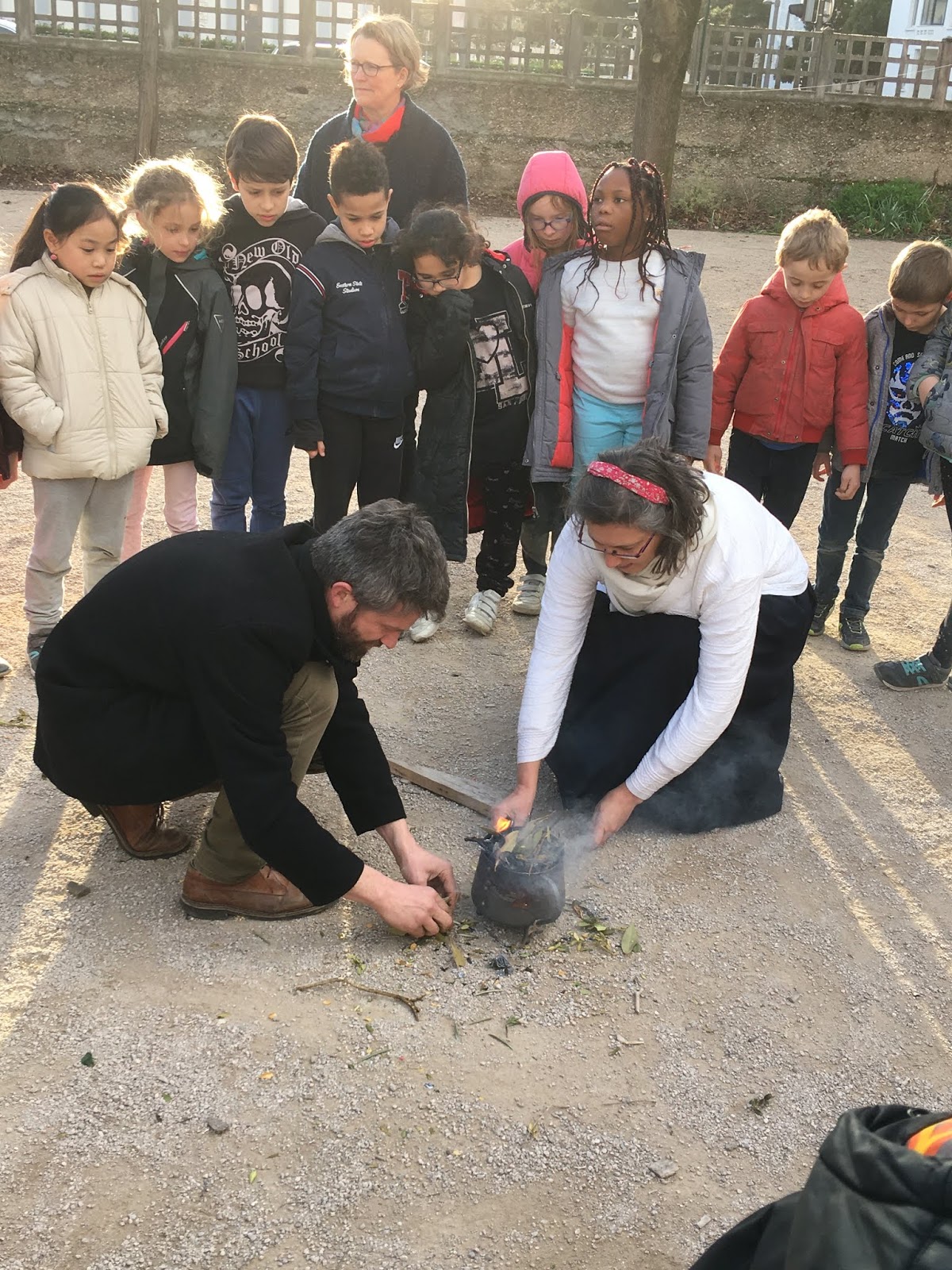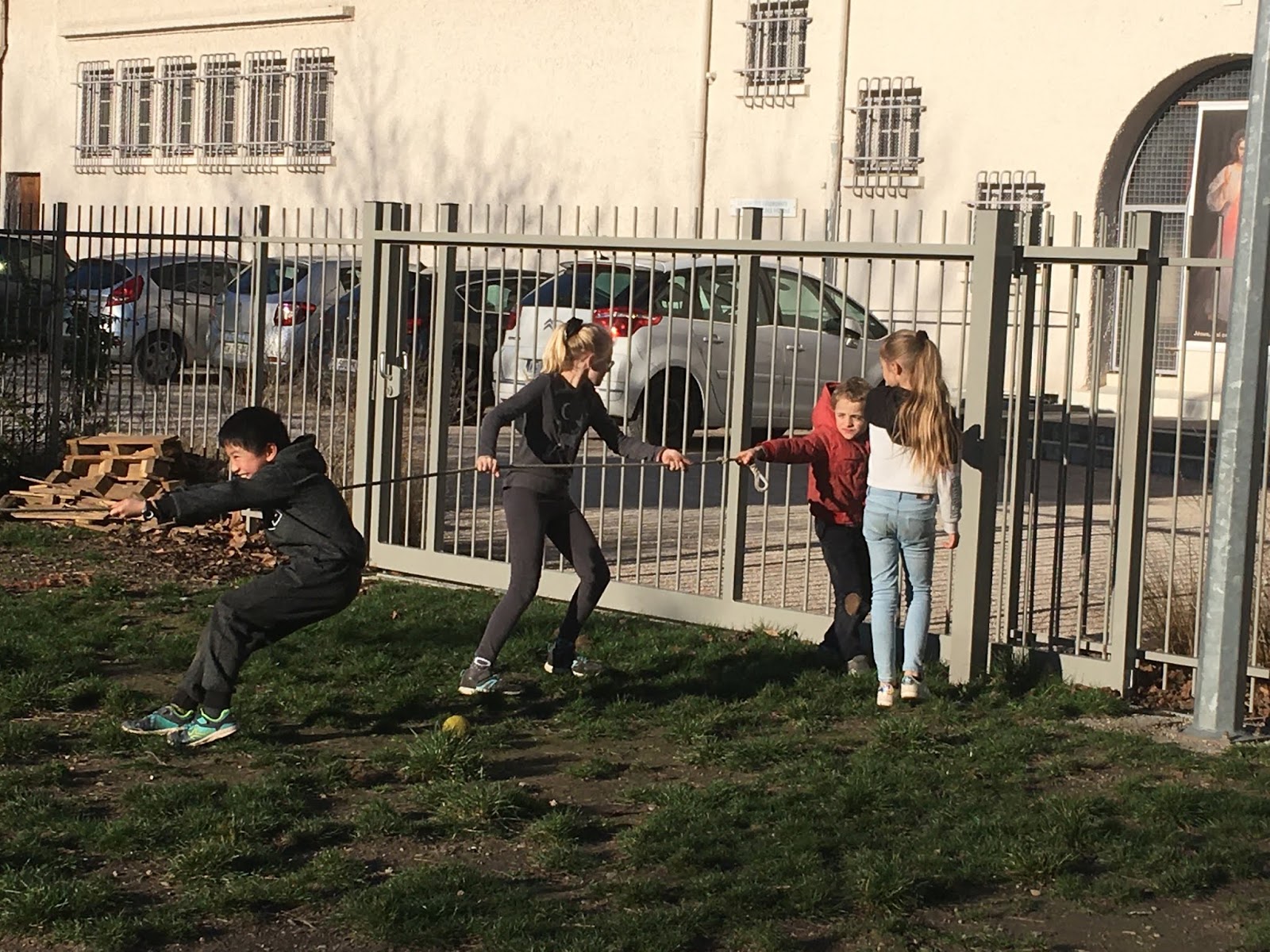 Pendant ce temps, l’autre groupe, pour se réchauffer, faisait un morpion géant et un « Chifoumi »