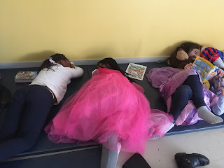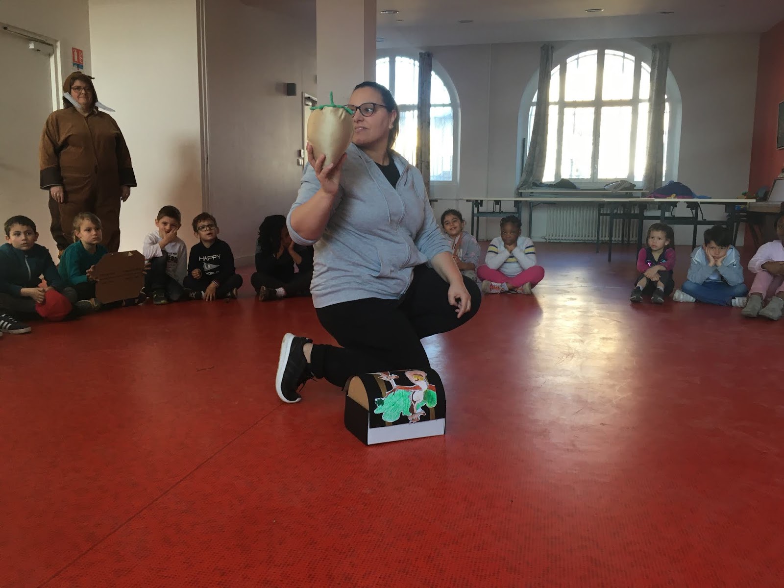 Chaque matin, nous avons regardé un petit morceau du film de l’âge de glace et les adultes ont présenté le thème. Ils étaient déguisés.