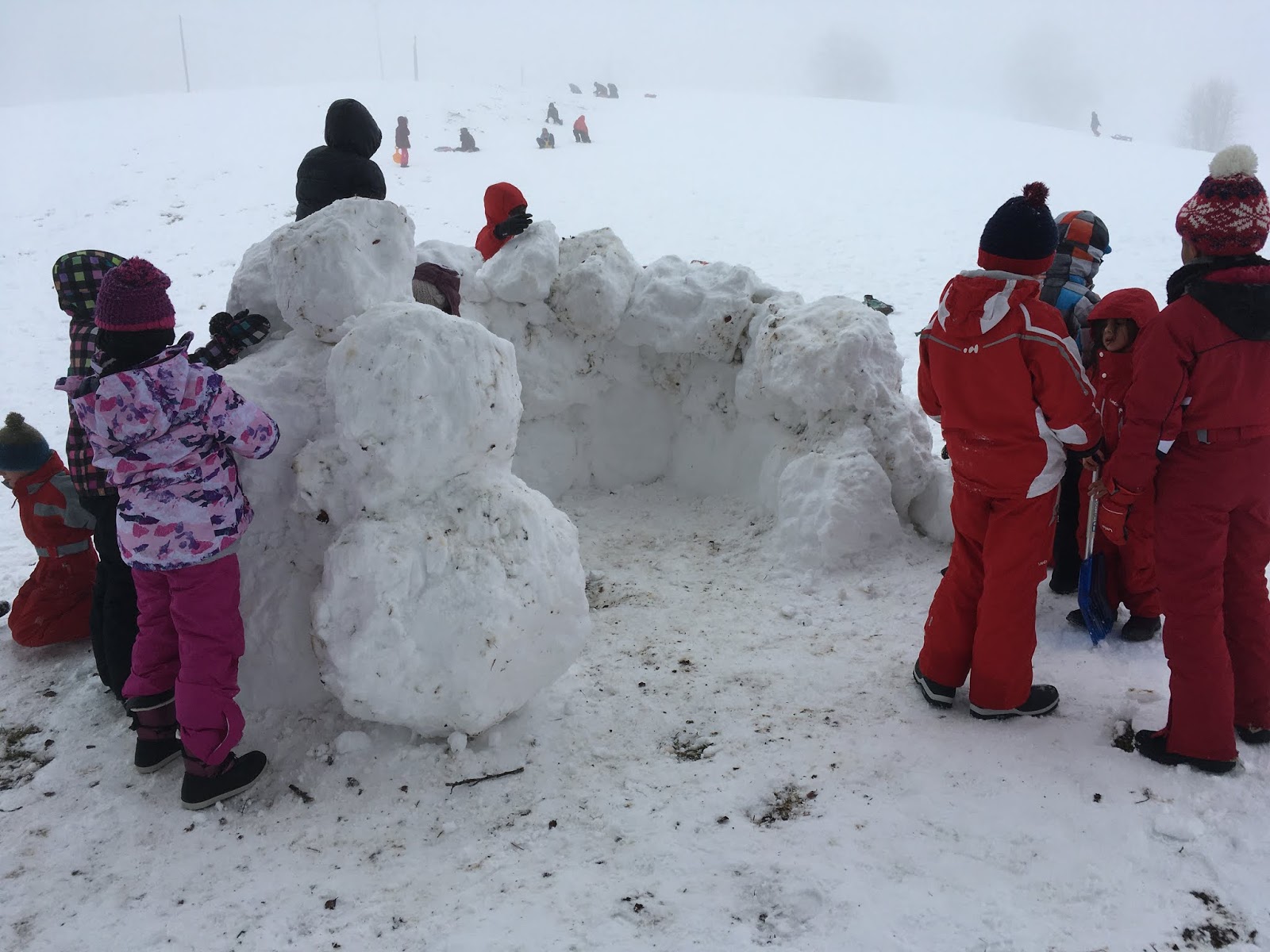 et un gros igloo sans toit. Chacun faisait des grosses boules.
