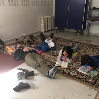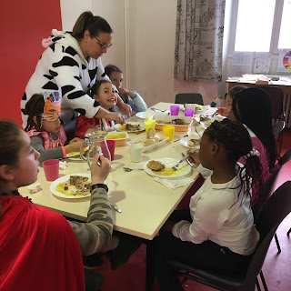 A midi, on a écouté une musique, on est resté en silence et on n’a parlé qu’avec des gestes jusqu’au fromage. Ça faisait du bien d’avoir du calme pour certains enfants mais d’autres n’ont pas trop aimé.