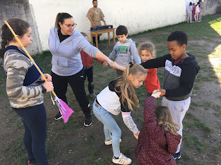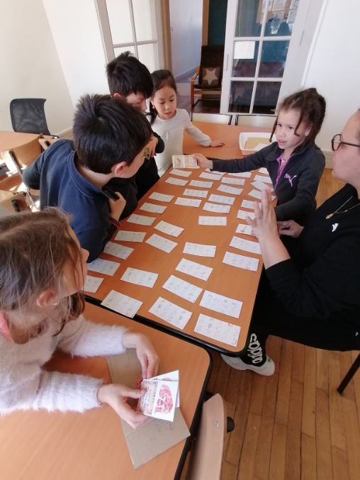 Nous avons fait des jeux pour faire connaissance (les grands d’un côté et les petits de l’autre)
