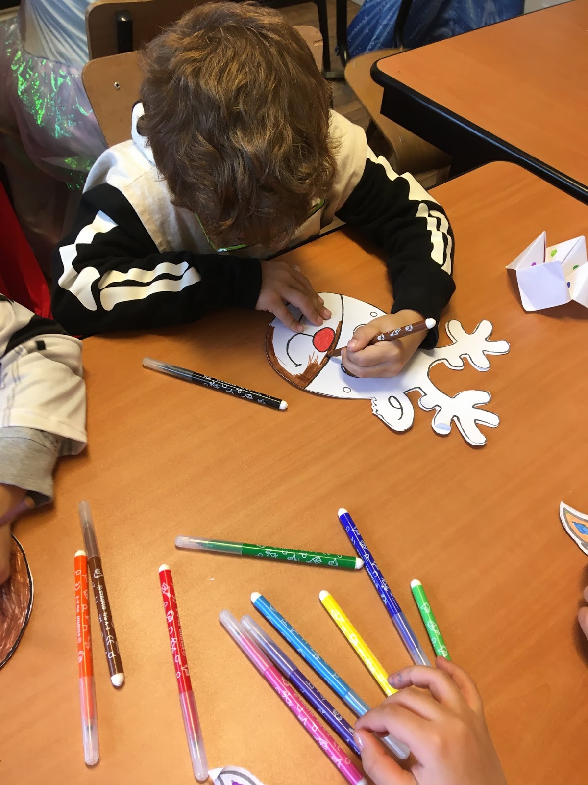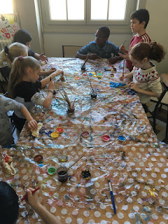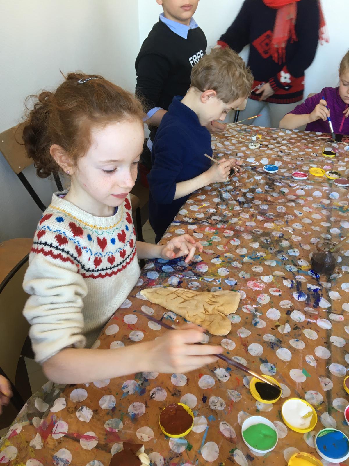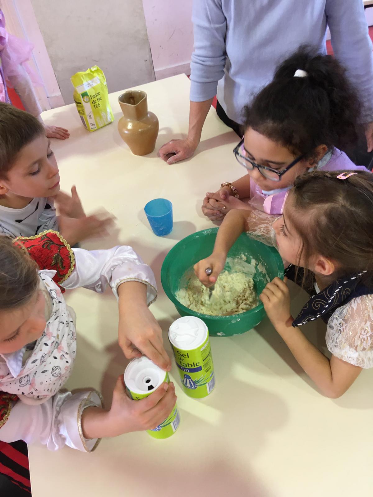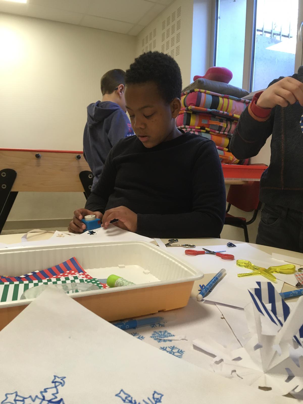 Après différents ateliers dont un de fabrication de flocons en papier, un atelier cuisine (salade de fruits), et un pour peindre nos pâtes à sel `