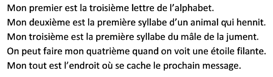 MESSAGE 1 (à donner quand tout est en place)