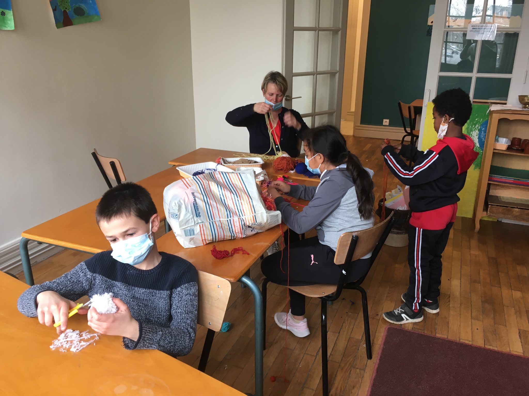 Nous avons pu comprendre comment la laine des moutons est tondue et travaillée pour ensuite apprendre à tricoter !