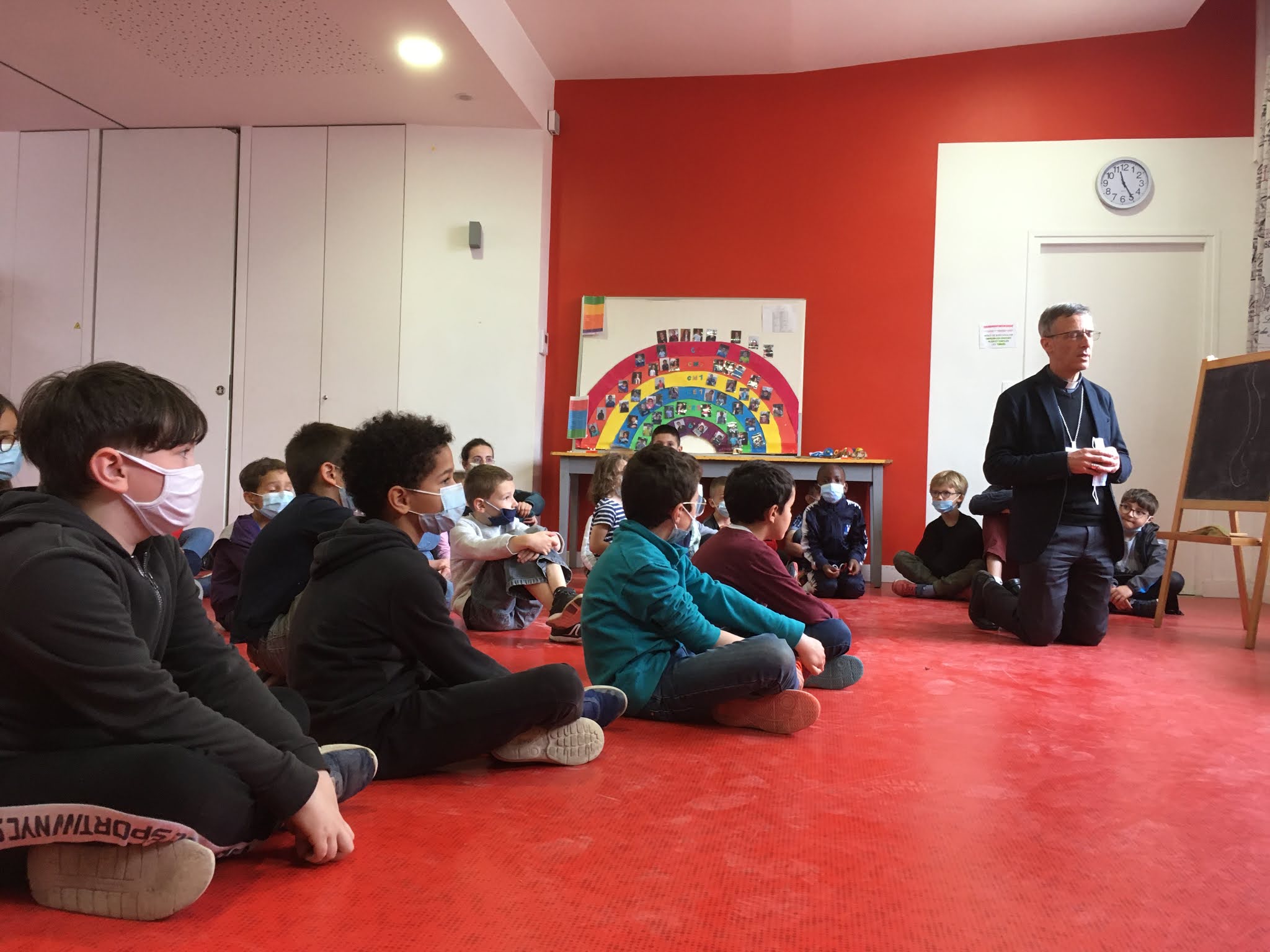 Mgr Olivier de Germay a répondu simplement à chacun, il a brièvement raconté son parcours et pris avec nous un petit refrain pour conclure.