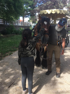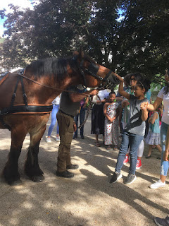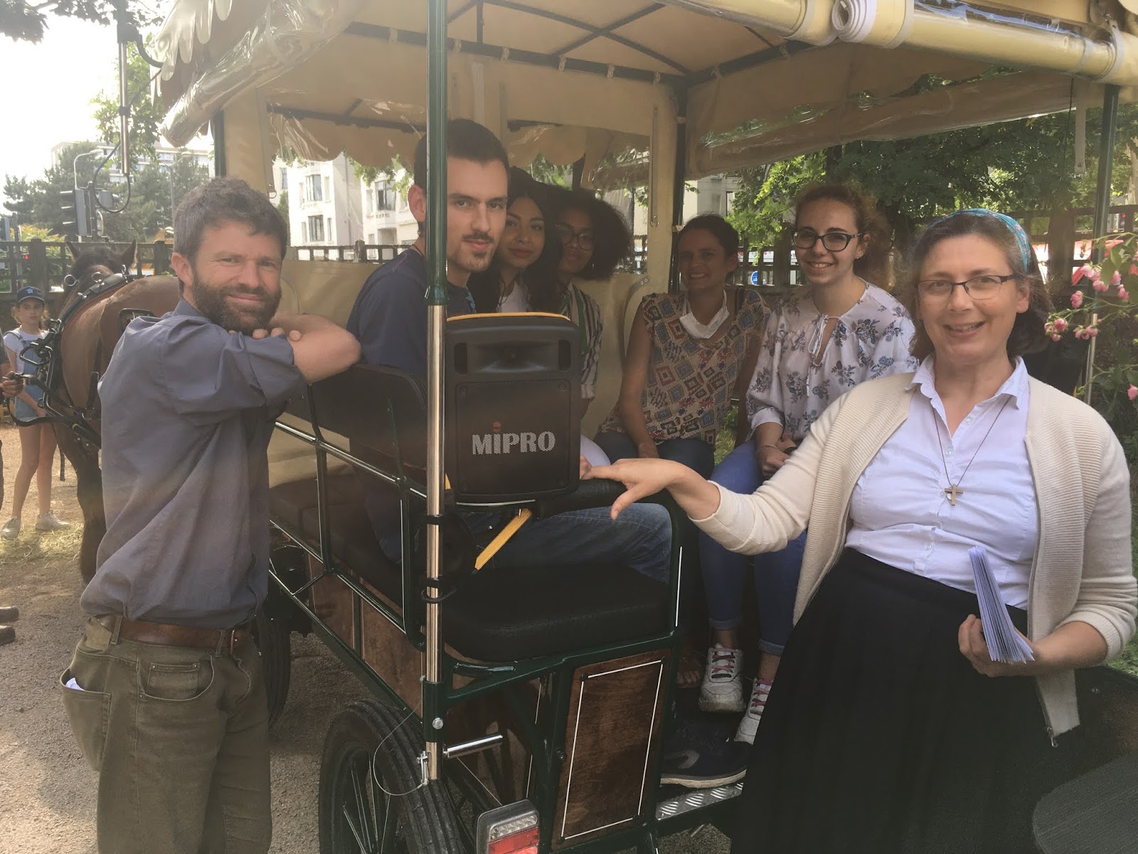 Nous avons caressé Vladimir, nous sommes montés dans la calèche le temps d’une photo et nous avons pris un petit temps de chants et prière pour prier pour tout ceux que nous aimons. Le Père Jean-Christophe nous a bénis de la part de Dieu, et ensuite, nous pouvions écrire notre prière, une lettre à Marie que nous avons déposée dans sa boite aux lettres !